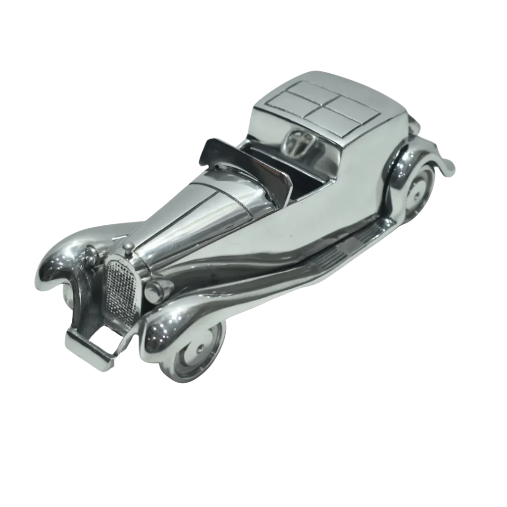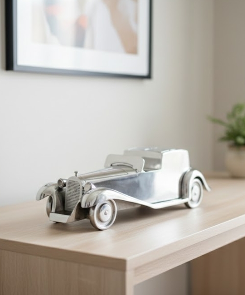 Premium vintage car showpiece crafted from high quality metal with a brilliant mirror polished finish. Designed with classic automobile detailing, it adds character and sophistication to homes, offices, hotels, and display areas. Manufactured with precision, strong construction, and smooth contours for lasting durability and shine. Ideal for gifting, collectors, and interior décor enthusiasts seeking a timeless decorative accent with luxury appeal and distinctive style for modern living spaces worldwide loved by many people today and always.