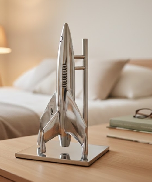 This metallic rocket showpiece is a premium decorative accessory crafted from high quality metal with a mirror polished finish. Designed for modern interiors, it adds a bold and futuristic touch to desks, shelves, offices, and display counters. We manufacture this product with precision, strong build quality, and smooth detailing for long lasting shine. Ideal as a décor item, corporate gift, or collector showpiece for premium spaces and homes with timeless global appeal and style today now.