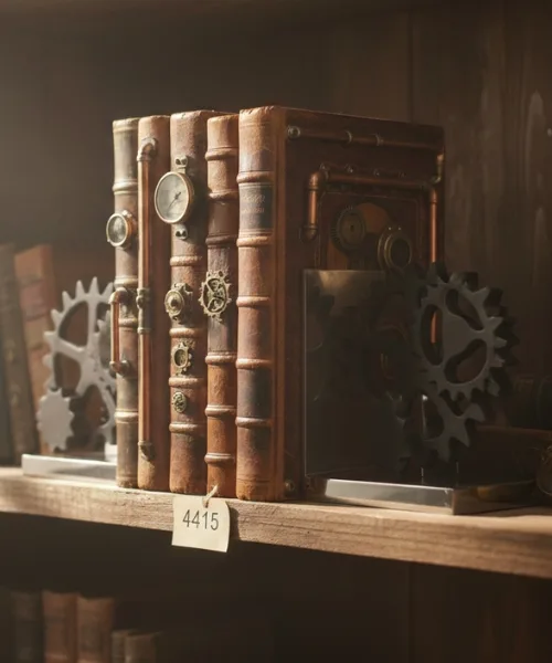 Industrial inspired bookends featuring gear details and a classic mechanical feel. Built from strong metal with a balanced base, they provide reliable support for heavier books. Ideal for rustic, study room, or themed interiors, they add depth and storytelling to your shelf. A distinctive option for those who appreciate vintage character blended with functional design.